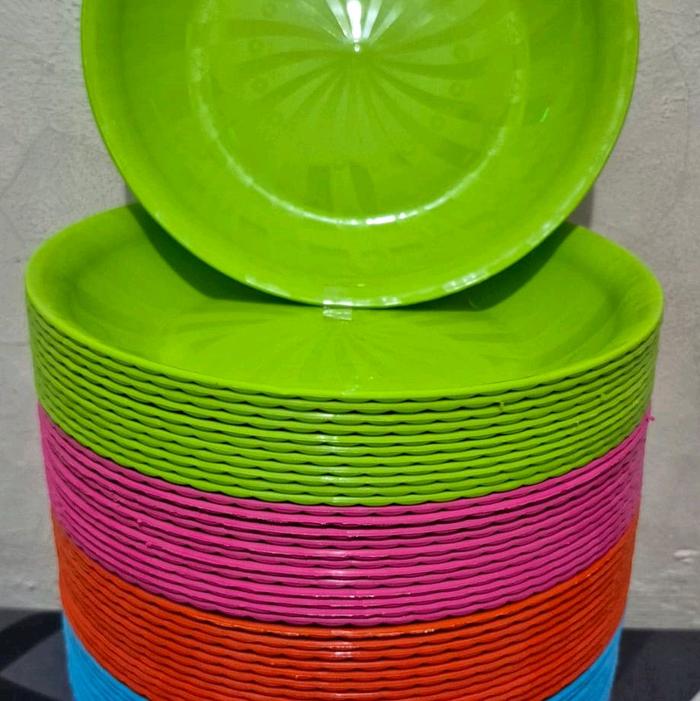 PIRING MAKAN PLASTIK BULAT MOTIF KERANG " PANCASONA 88 " PAKET 12 PCS BONUS CENTONG NASI
