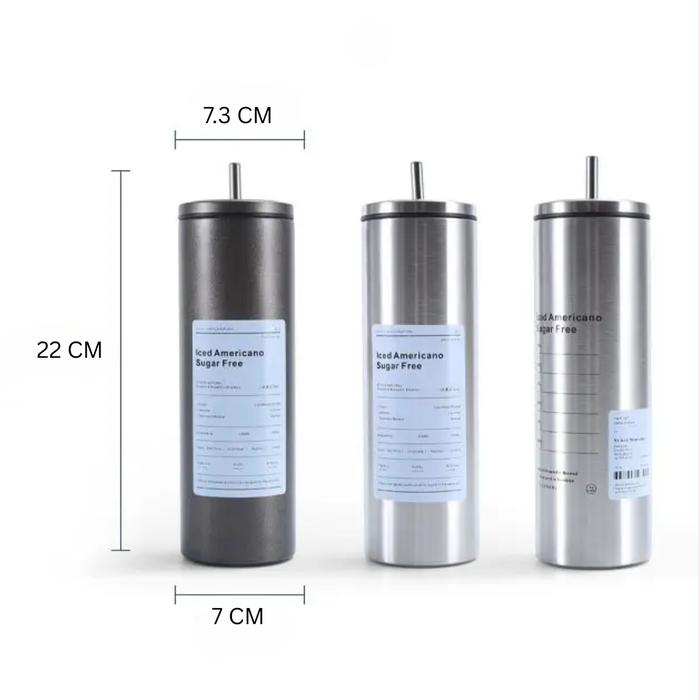 TUMBLER BIG & SLIM AMERICANO STAINLESS STEEL 600ML / TUMBLER MUG / GELAS KOPI FREE SEDOTAN - SS RANDOM