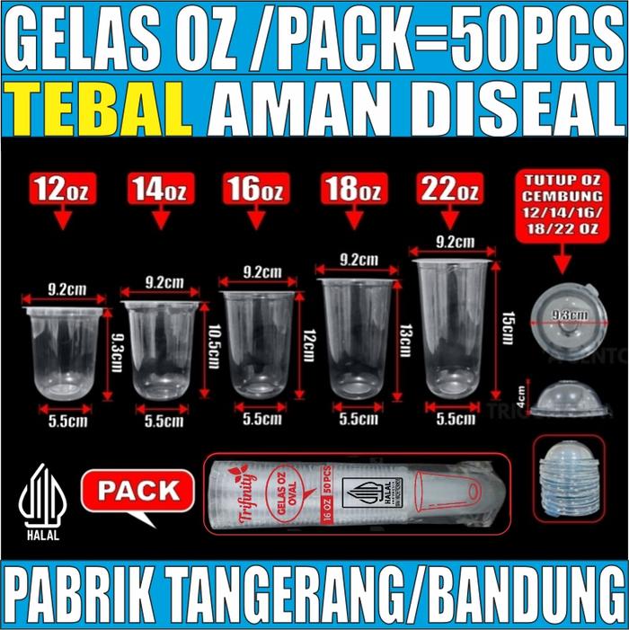 Gelas Oz HALAL Plastik Oval Tebal 12oz 14oz 16oz 18oz 22oz Datar Rata Pack Cup Murah Trifinity - Gelas Oval 14oz