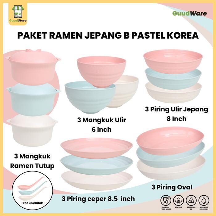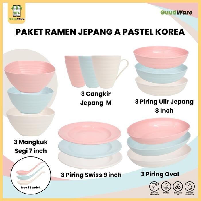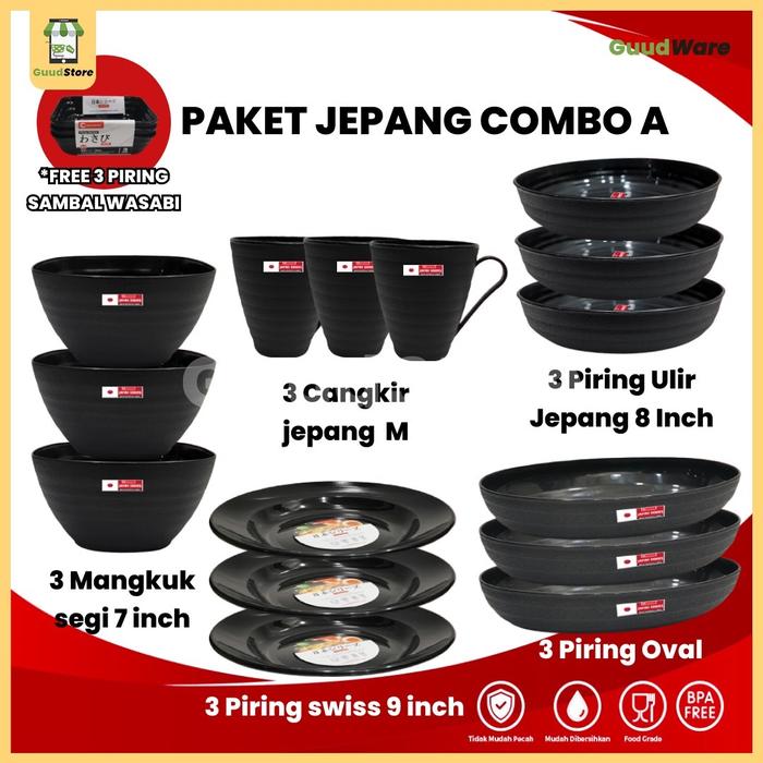 Set paket Ramen jepang hitam piring makan gelas dan mangkuk Kitchenware Plastik pp 5 Food Grade - Paket Jepang A