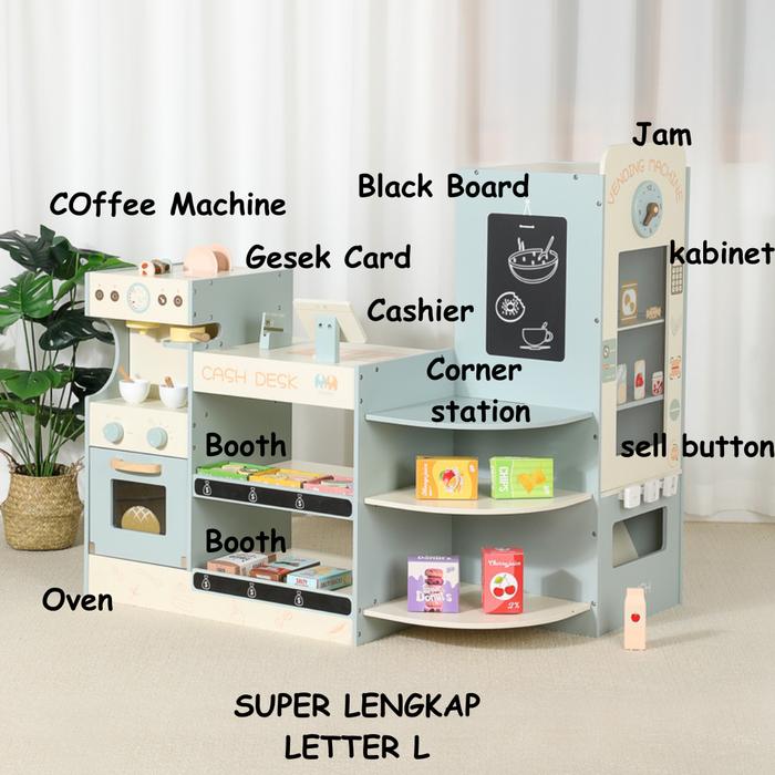 WOODEN SUPERMARKET COFFEE SHOP SUPER LENGKAP-MAINAN PRETEN PLAY
