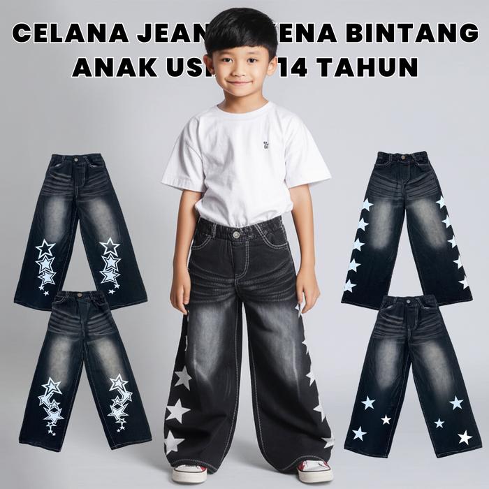 Klrsn Celana Jeans Skena Bintang - Celana Kulot Bahan Jeans Fashion Unisex Untuk Anak Laki-Laki Perempuan 3-14 Tahun - C