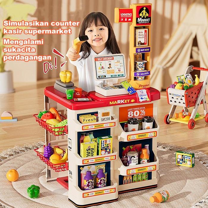 82CM MAINAN ANAK HOME SUPERMARKET SET JUALAN DAN BELANJA SUPERMARKET TROLLEY BELANJA SUPERMARKET TOYS - A-SUPERMARKET+CAR