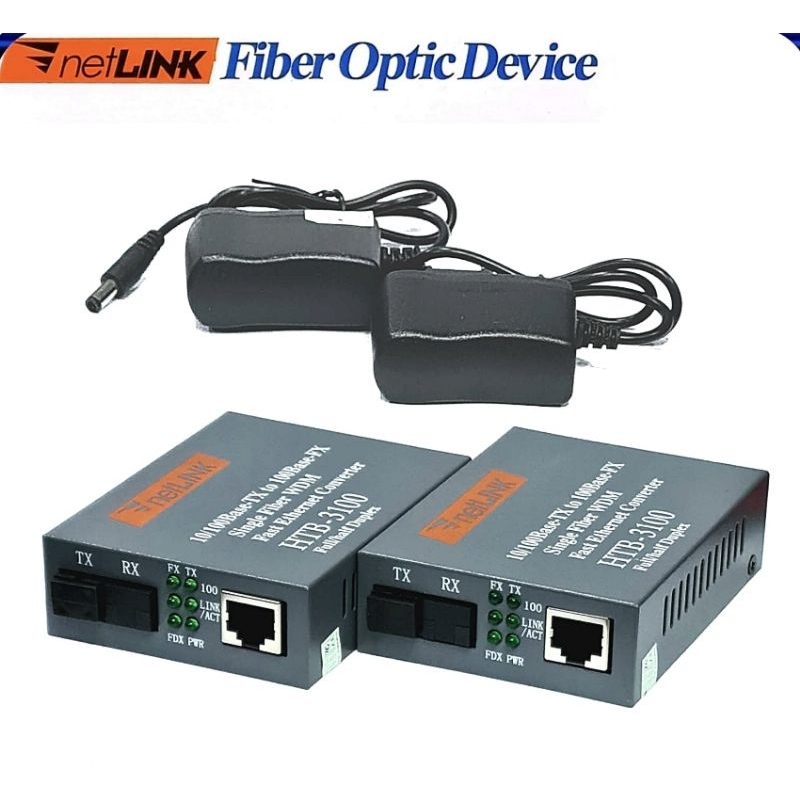 Konverter Media Optik Htb 3100 A+B Serat Rj45 Netlink 1 Pasang 25Km