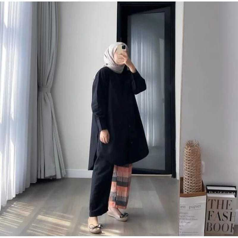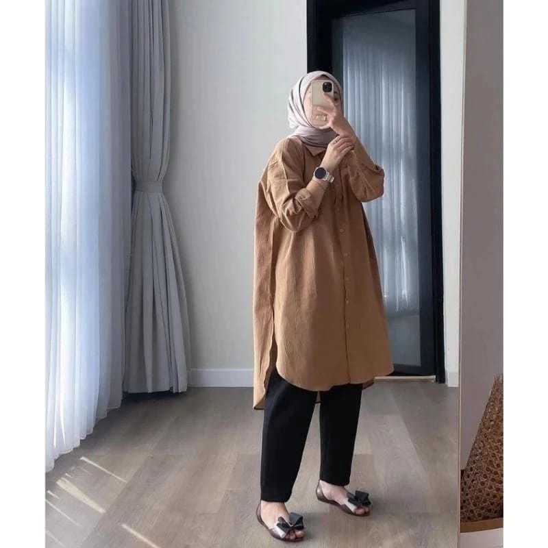 CLARA TUNIK KATUN LINEN/Kemeja Long Tunik Wanita/Kemeja Oversized Lengan Panjang
