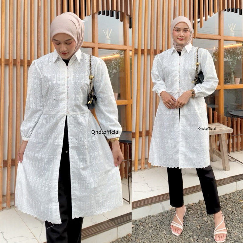 Elea Tunik Katun Bordir Bunga Putih Premium longtunik kondangan