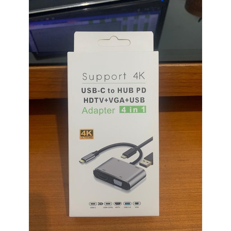 Converter Konektor Usb Type C To 4 In 1 Hdmi Vga Usb 3.0 Pd Usb C 4K Hub Dongle