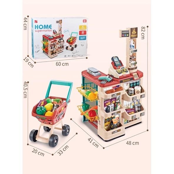 MAINAN HOME SUPERMARKET SET TROLLEY BELANJA / MAINAN JUALAN BELI KASIR - MERAH