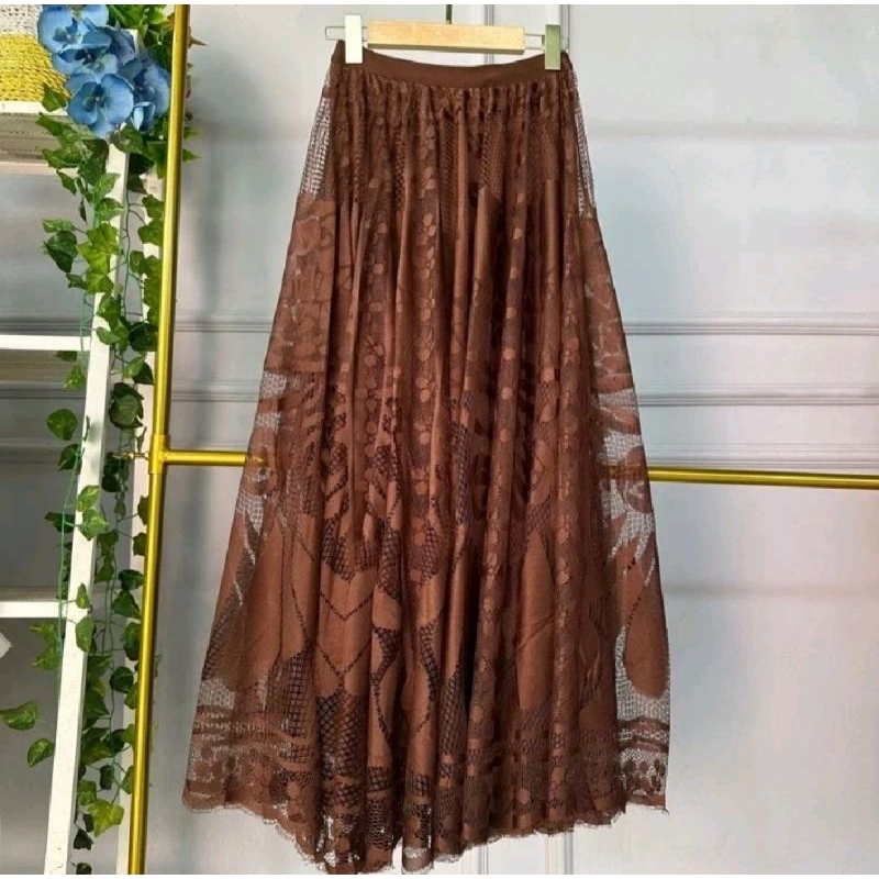 Jesa Rok Brukat Renda Lace Panjang Wanita Import Premium Rok Brokat Brocade Skirt