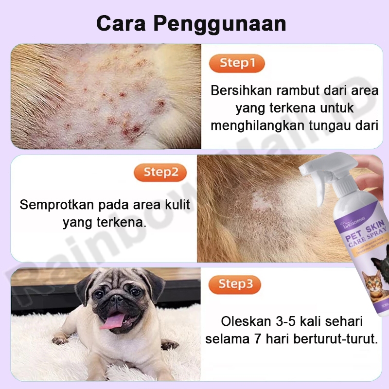 Obat Jamur Kucing Spray Obat Kurap Kucing Obat Gatal Anjing Obat Scabies Kelinci, Jamur, Ringworm, Demodex, Impetigo, Ku