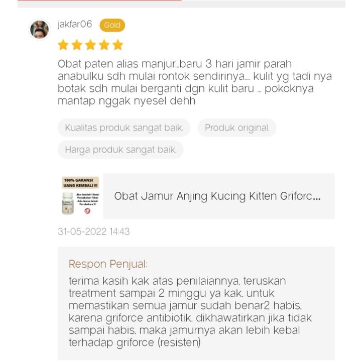 Obat Jamur Anjing Kucing Kitten Griforce Anti Jamur Ringworm Parasit Kulit Berkerak Alergi Dermatitis Bulu Rontok Ketomb