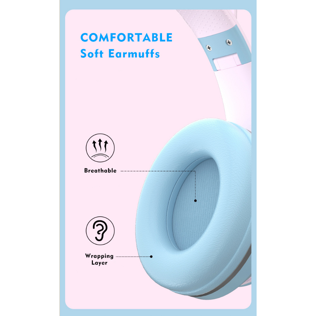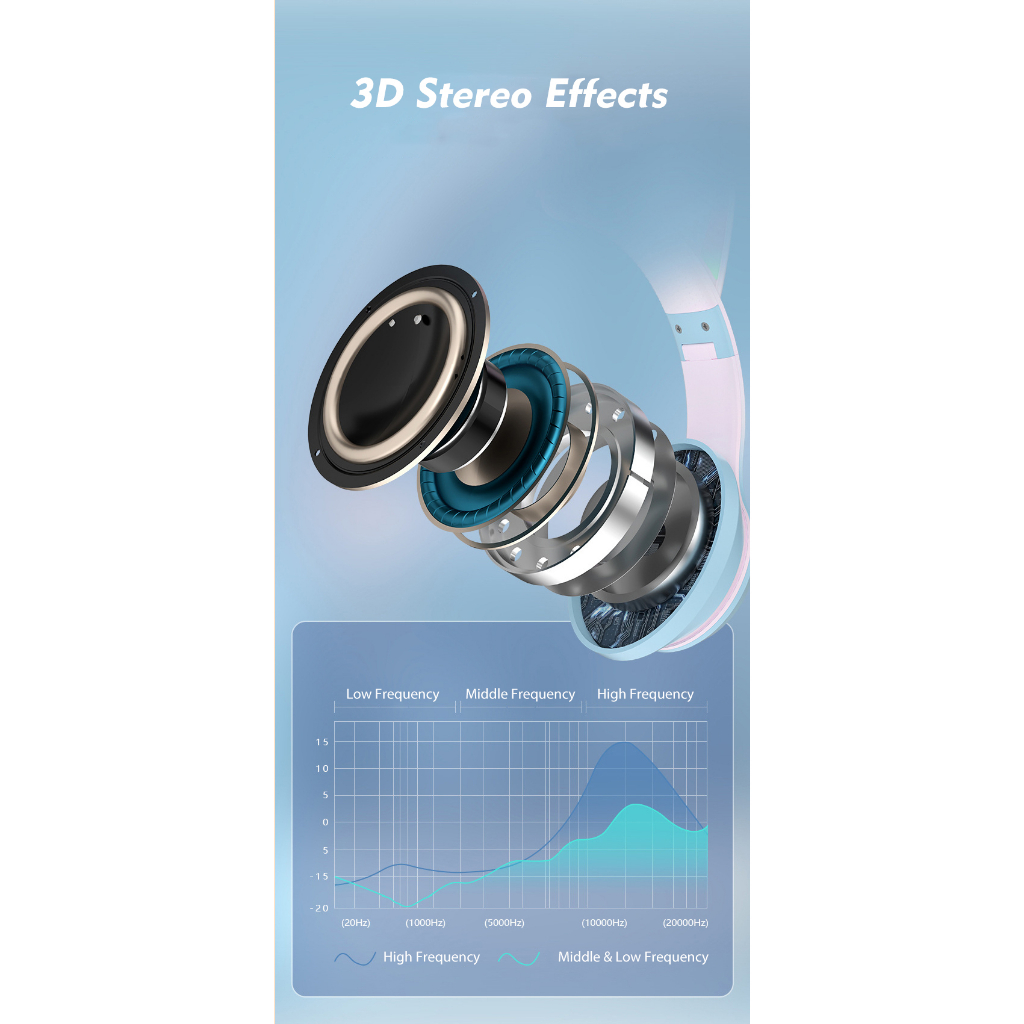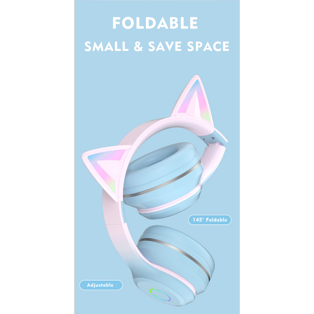 Bluetooth Earphone Wireless Headphones Cute Cat Ear Foldable Led Color Light Hifi Stereo Headset Bluetooth