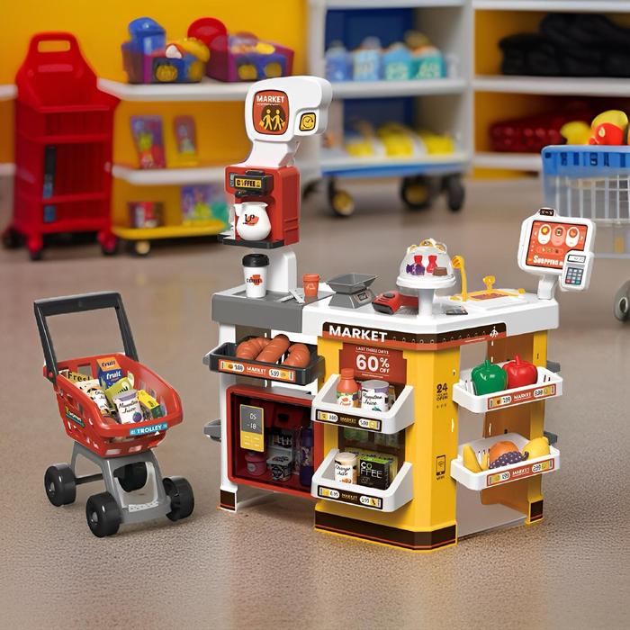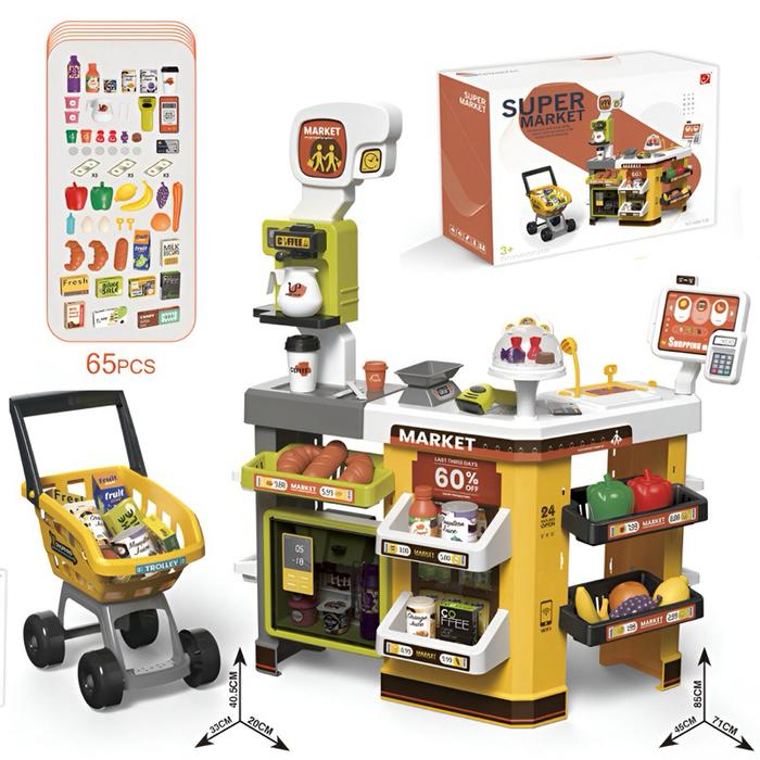 MAINAN SUPERMARKET SET LENGKAP DENGAN MEJA KASIR MESIN KOPI DAN KULKAS YANG BISA KELUAR ASAP - KUNING
