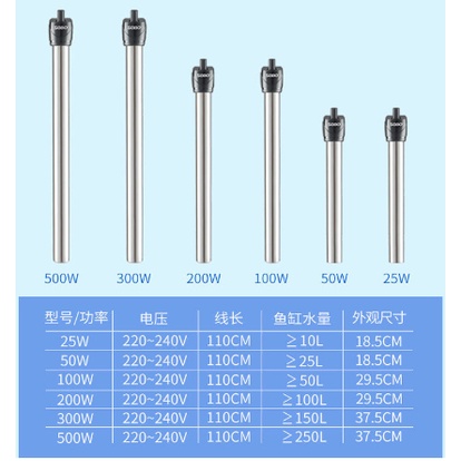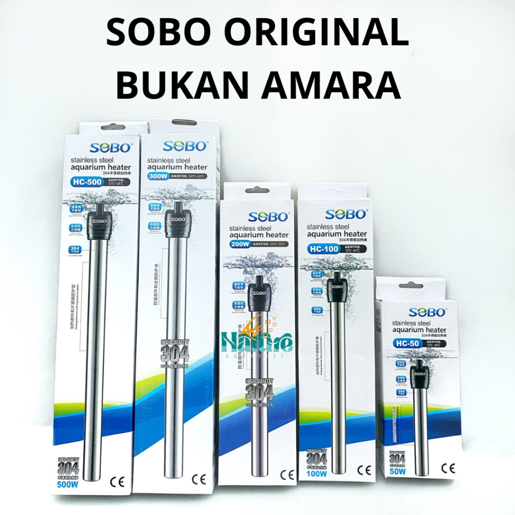 Sobo Water Heater Stainless Stell Bukan Amara Pemanas Air Aquarium 25W 50W 100W 200W 300W 500W