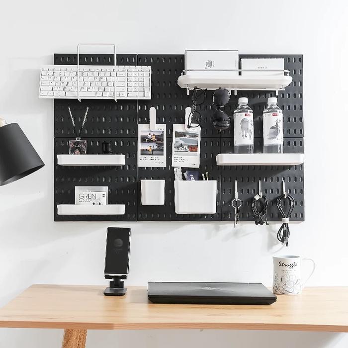99KHOME PEGBOARD PAPAN DINDING H0LE BOARD TEMPEL DEKORASI KAMAR RAK GANTUNG TANPA PAKU HITAM K1167 - H2