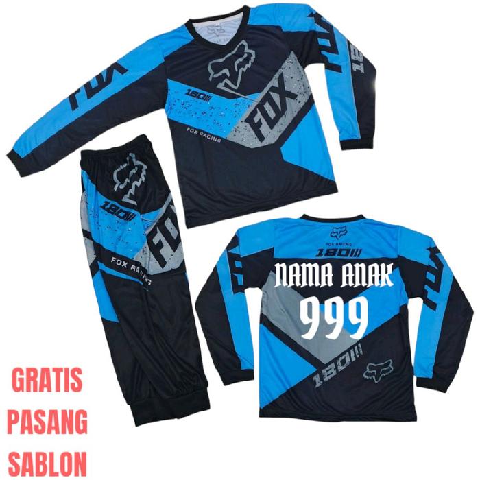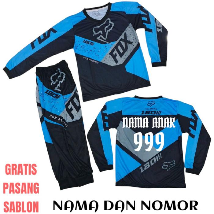 Setelan Jersey Motor Cross Umur 2-10Thn Uniseks Nyaman Set Anak Outdoor Sport Baju - Setelan Jersey + Nama + Nomor, 4Thn