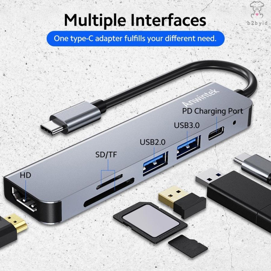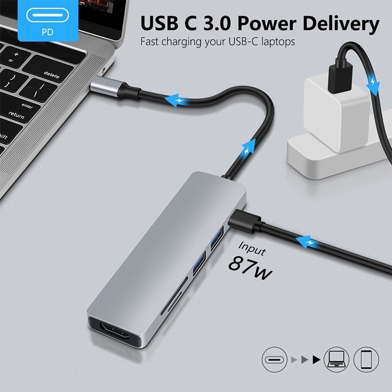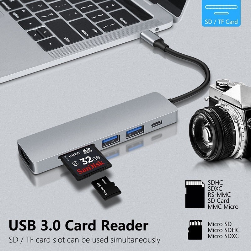 Converter Adapter 6 In 1 Type C To Hdmi Tf Sd Usb 3.0