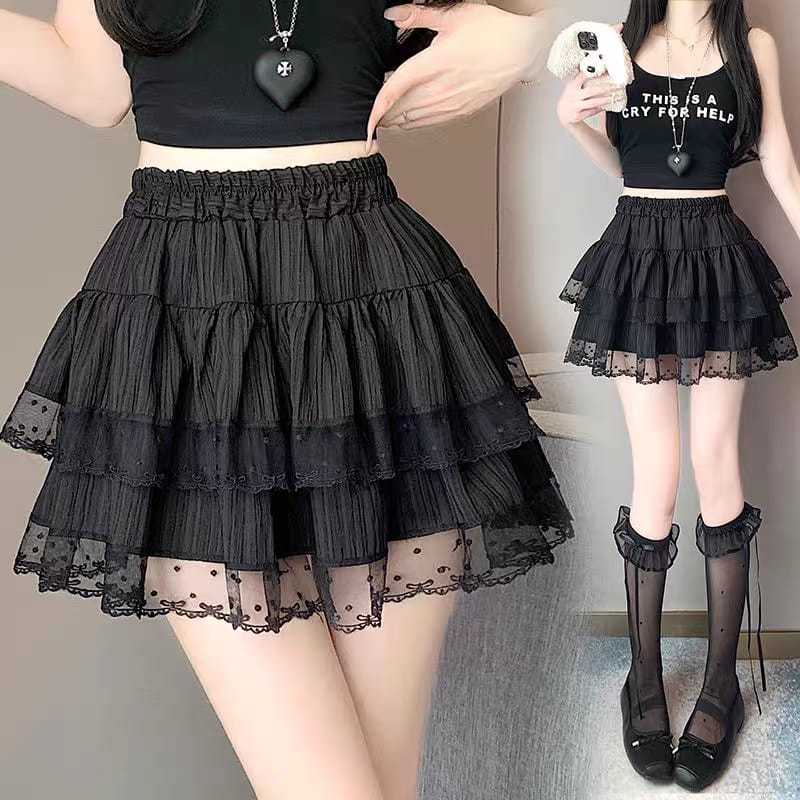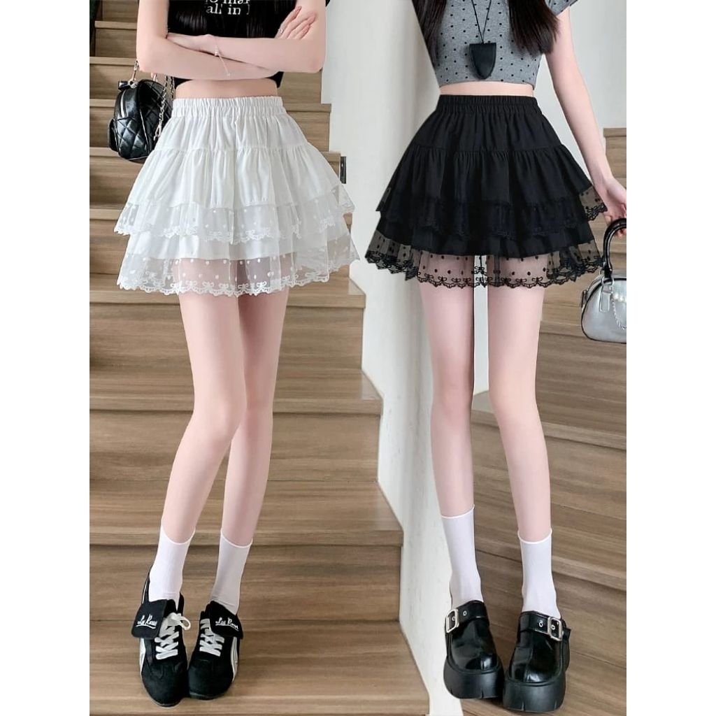 Mini A-Line Skirt Korean Style / Rok Kue Berlapis Rok Renda High Waist Lace Skorts / Celana Rok Wanita Untuk Pesta/Rok M