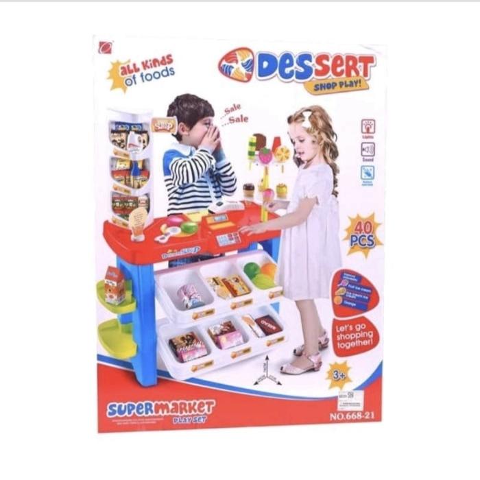 MAINAN SET SUPERMARKET DESERT SHOP TROLI KERANJANG KASIR KASIRAN REGISTER SCAN DESSERT SWEET CANDY CAKE BELANJA