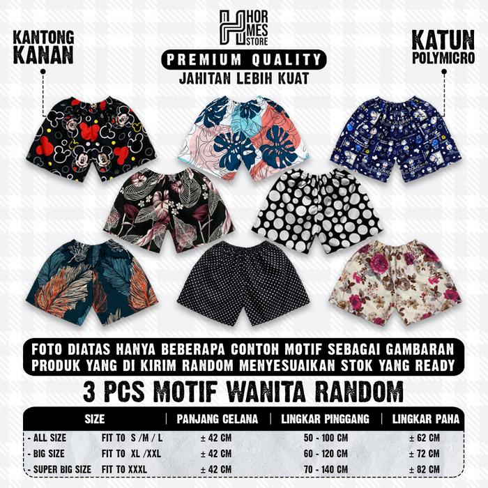Paket 5 Pcs Celana Boxer Premium | Celana Santai Pria Wanita | Boxer Motif | Celana Pendek | Celana Kolor - 3 Pcs Motif