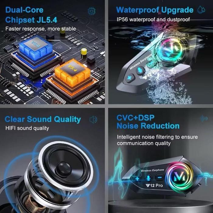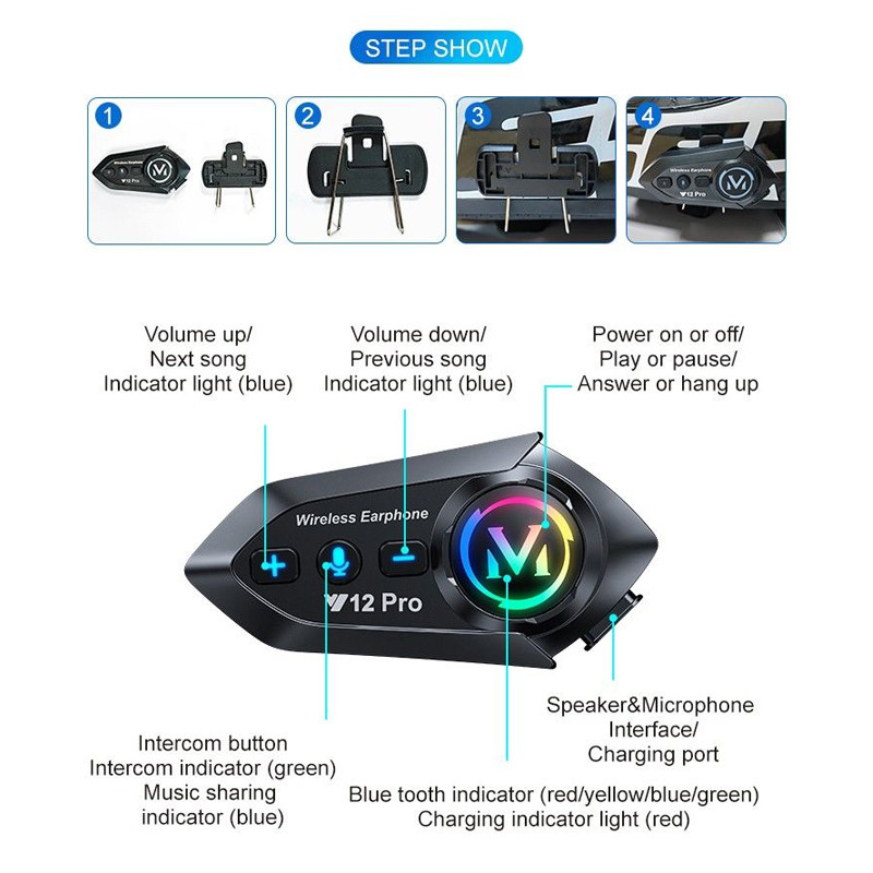 Y12Pro Intercom Headset Motorcycle Helmet Intercom Bluetooth Headset V5.3 Hands Free Call Interkom 500m Mendukung Pembag