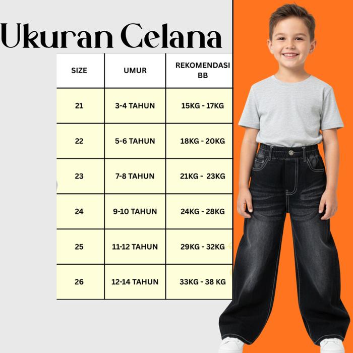 Celana Jeans Gombrong Anak Skena Viral Model Populer Usia 3-14 Tahun Bahan Premium Desain Menarik Fashion - Hitam Whiske
