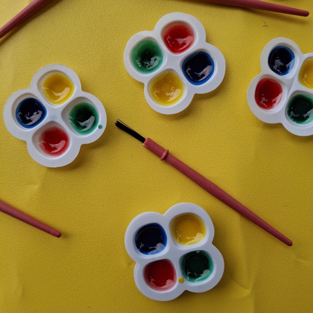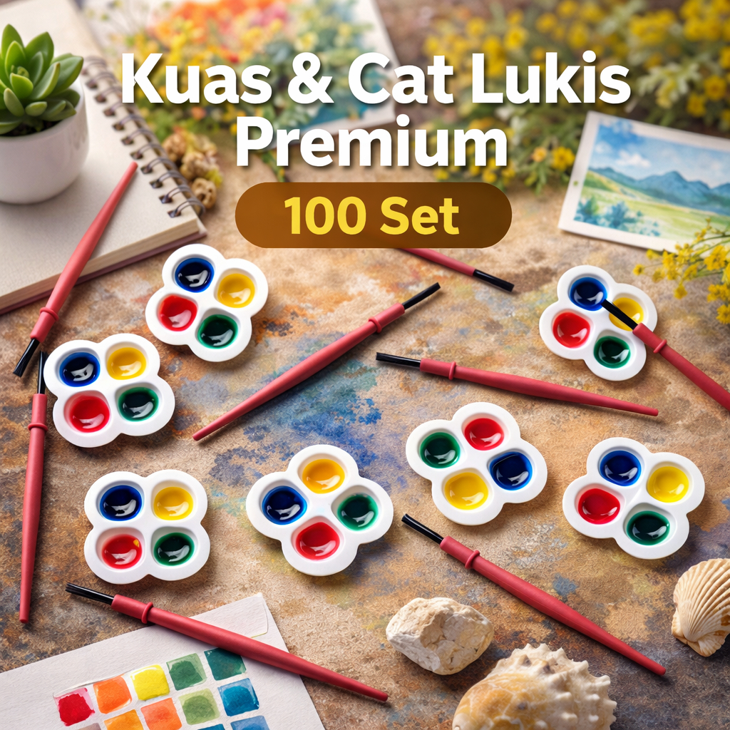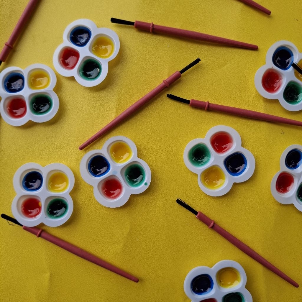 kuas lukis dan palet cat isi 4 warna cocok untuk gypsum painting isi 100 pcs