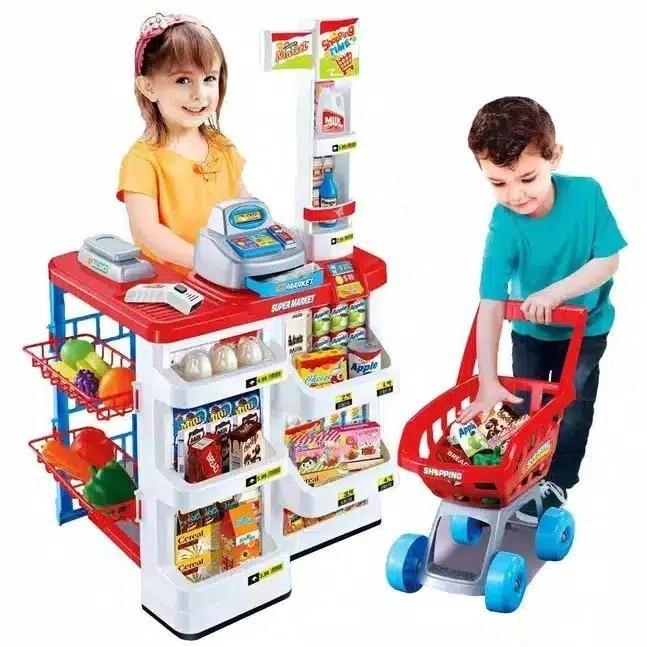 MAINAN ANAK HOME SUPERMARKET JUMBO+TROLLEY BELANJA CASHREGISTER