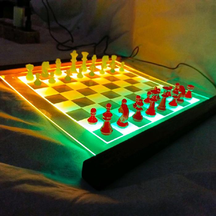 PERMAINAN PAPAN CATUR AKRILIK LED DIMENSI 30X30 CM PION RESIN BOARD GAMES - 1, MERAH BENING