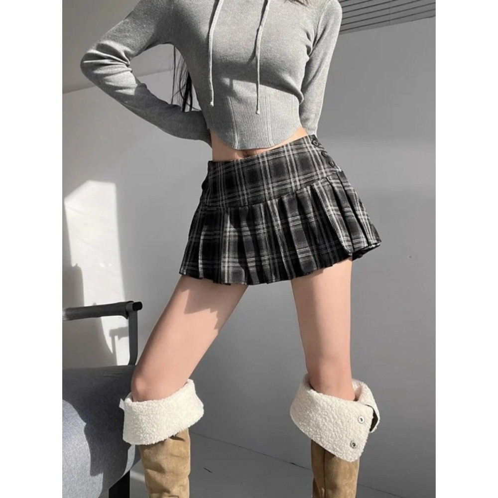 Meet.U Rok Celana Pendek Lipit Rok Mini Kotak-Kotak Seksi Gaya Korea Rok Pinggang Relasting