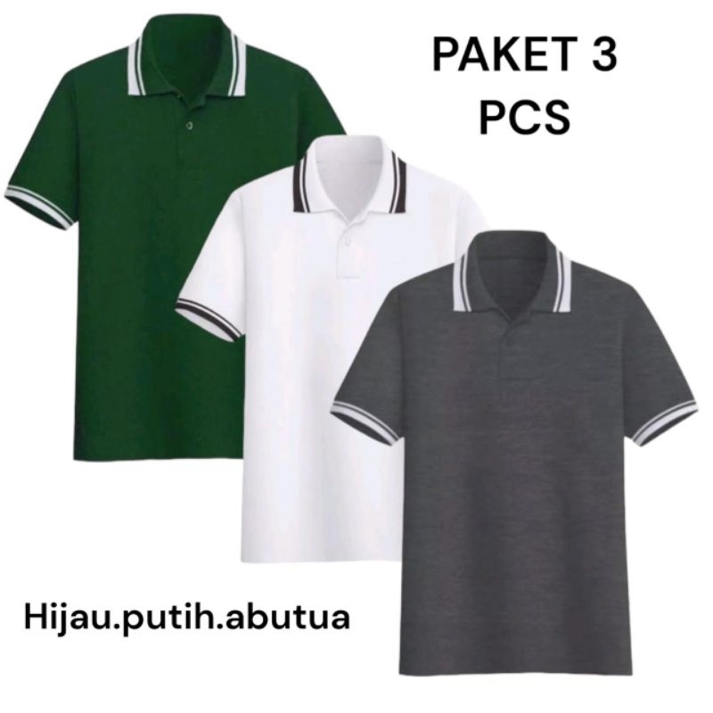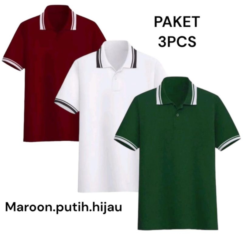 PROMO PAKET 3 PCS/ KAOS POLO PREMIUM/ KAOS KERAH STRIPE/LENGAN PENDEK