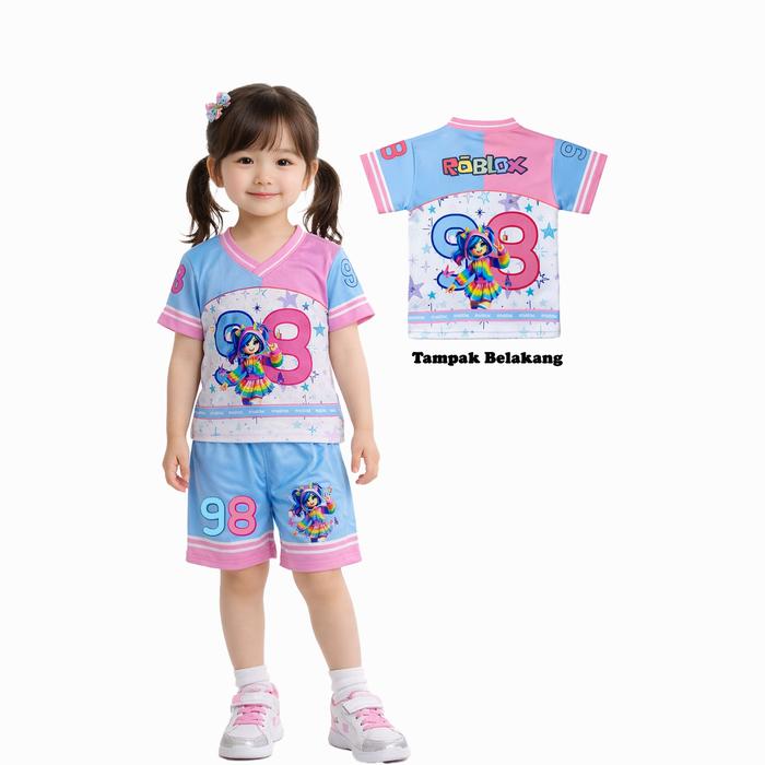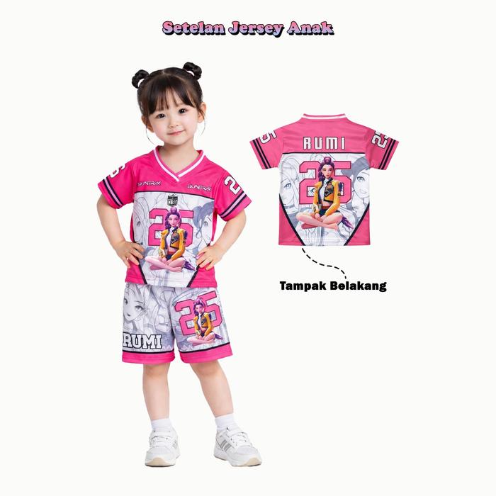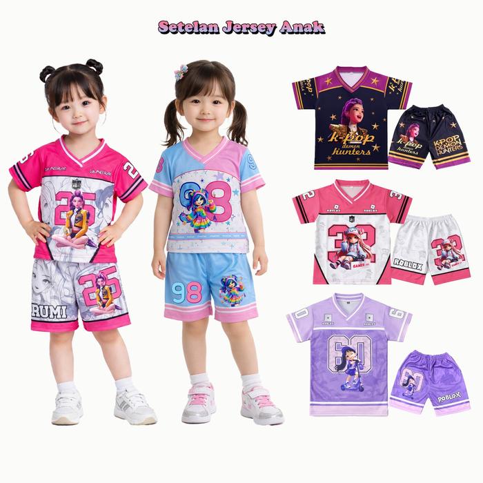 Stelan Jersey Premium Gambar Full Printing Sublim Oneset Kaos Anak Perempuan Usia 1-10 Tahun Olahraga Outdoor Desain Luc