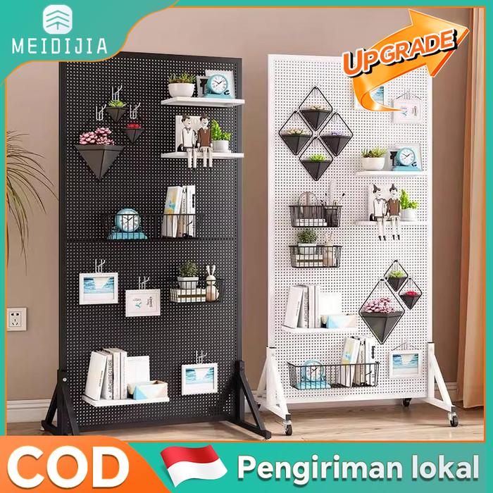 LOGAM PAPAN LUBANG PEGBOARD 150X80CM DENGAN RODA DAPAT DIPINDAHKAN - UNTUK RAK DAPUR GANTUNGAN PERALATAN DEKORASI & DIY RUMAH - HITAM 1255040CM