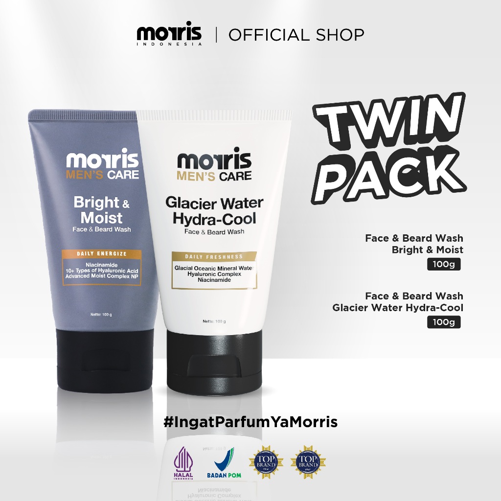 [TWIN PACK ISI 2 WHITE & GREY] MORRIS MEN Facial Wash Bright and Moist X FW Men Glacier Water HydraCool