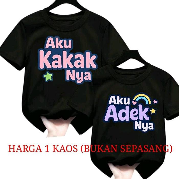 Kaos Anak Kakak Adek Usia 2-12Tahun Per 1Pcs Baju//Pakaian Fashion Anak Perempuan - Hitam, S Kakaknya
