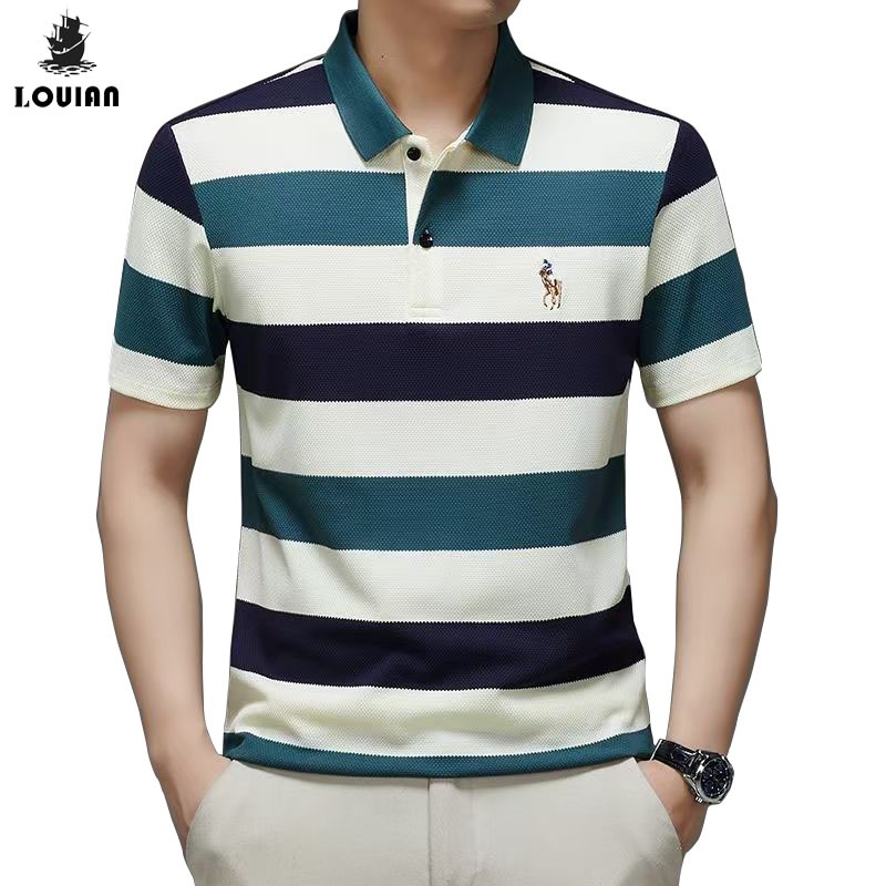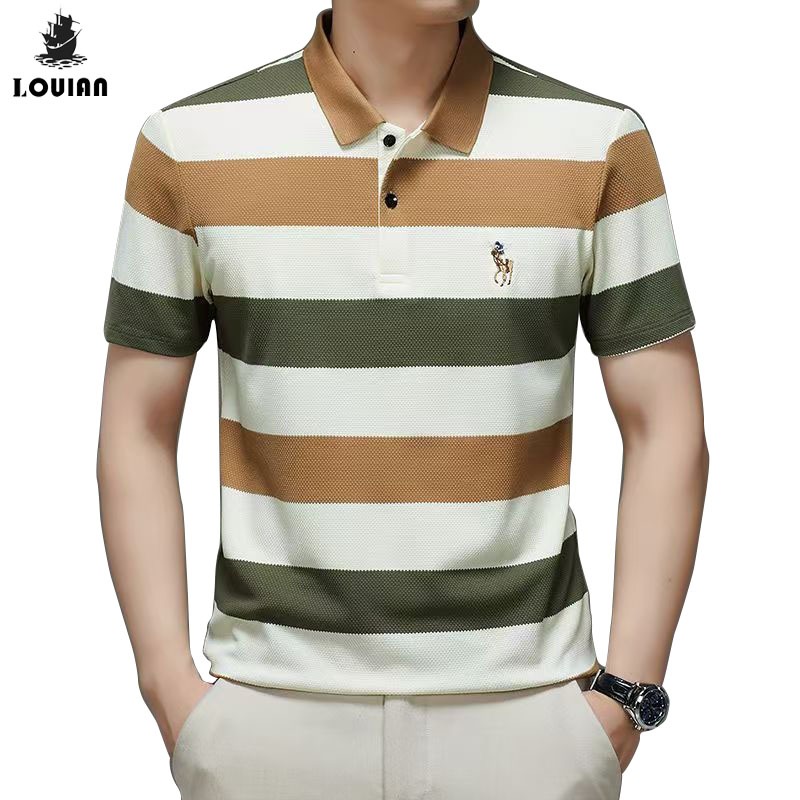 Loulan kaos berkerah pria premium Kaos Polo Shirt Pria stripe kaos berkerah pria sulaman tangan Kaos Polo Pria