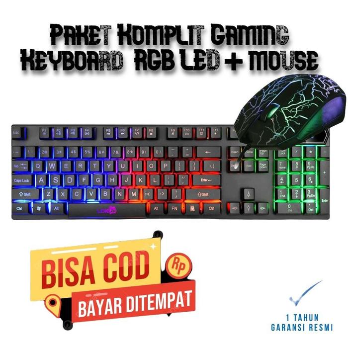 PAKET KOMPLIT KEYBOARD GAMING + MOUSE TERMURAH LAMPU LED RAINBOW LIGHT SET KEYBOAR MOUSE KABEL USB KEYBOARD MOUSE GAMING RGB USB WIRED KEYBOARD GAMING SET UNTUK KOMPUTER PC LAPTOP - SET KOMPLIT