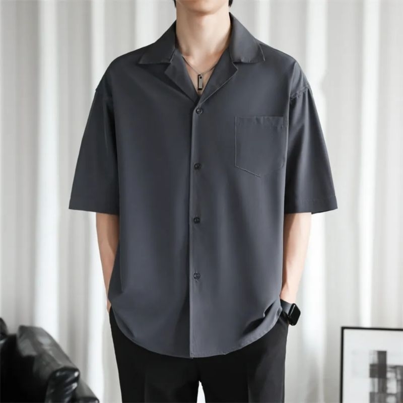 Baju Pantai Kemeja Polos Hawai Kerah Piyama Bahan Katun Rayon Korean Style