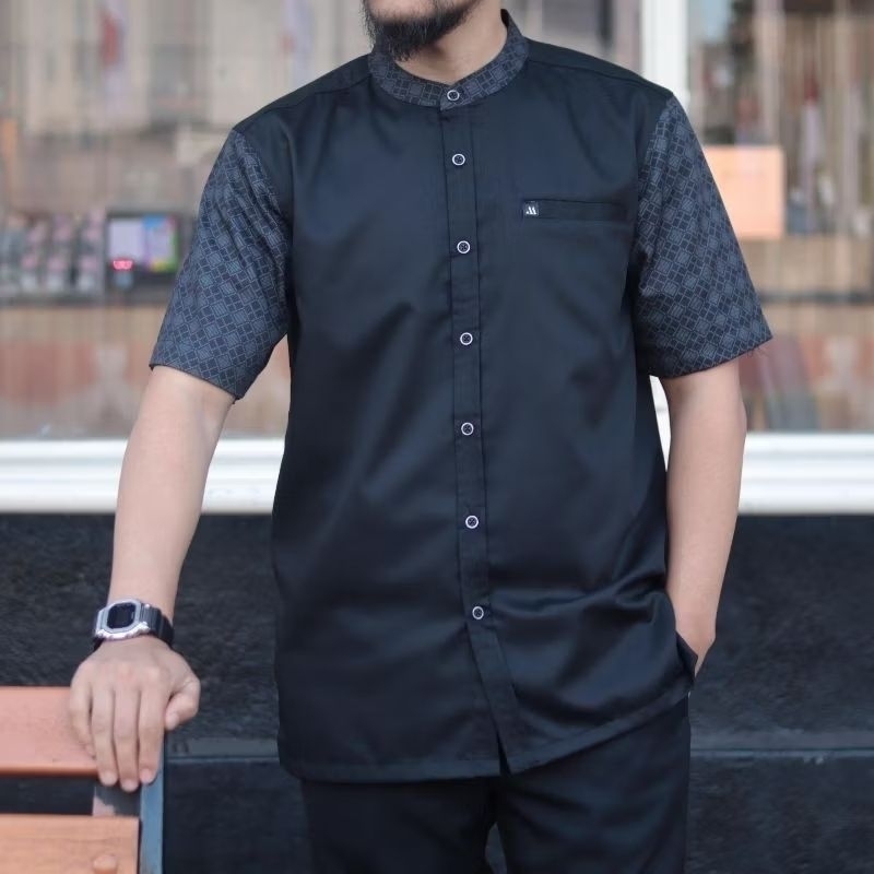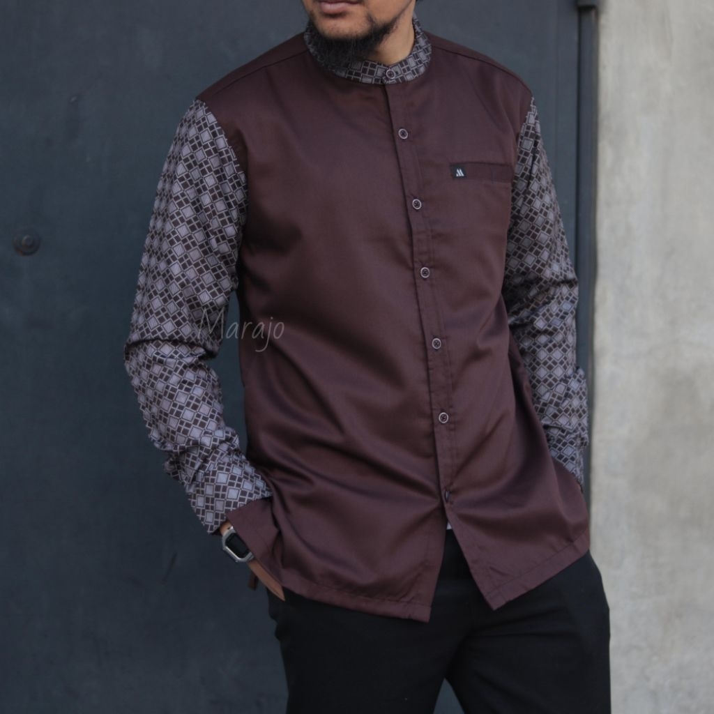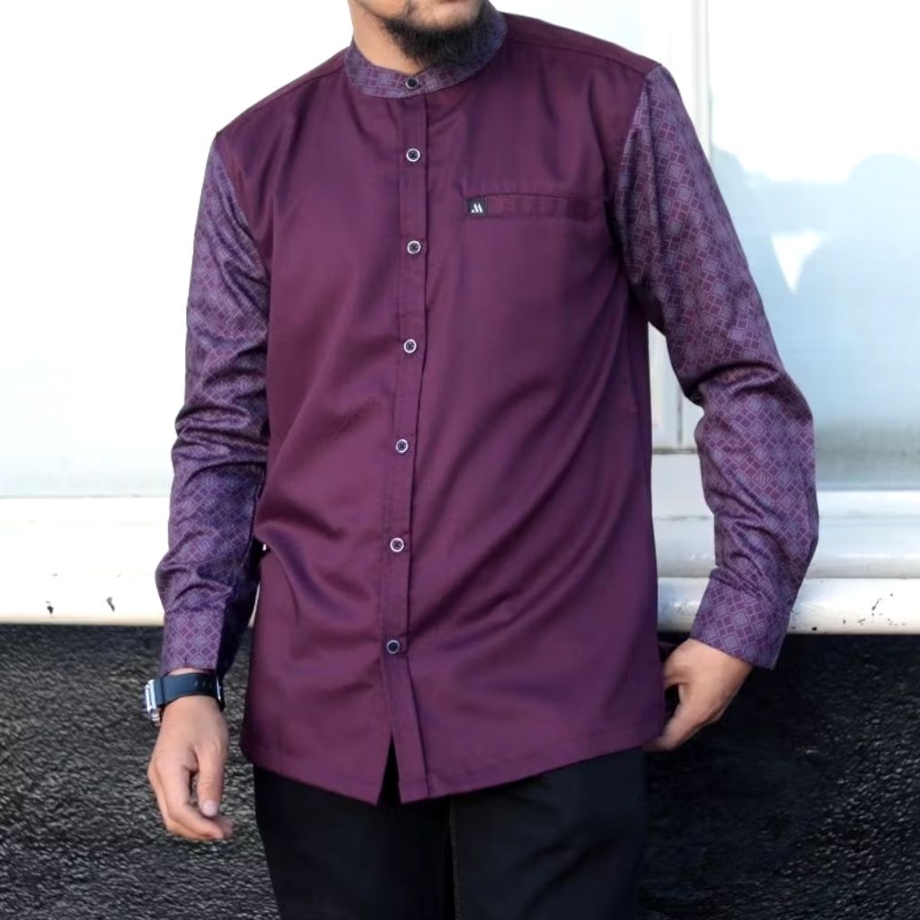 Kemeja Sumando-kemeja pria lengan panjang motif embos full kancing