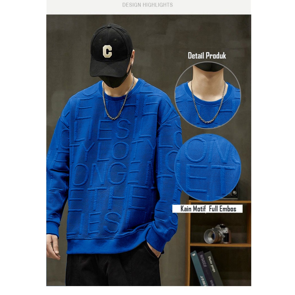Mokokomo - T-shirt Sweater Pria Deris Motif Embos Atasan Oversize Big Size Baju Premium Korean Style