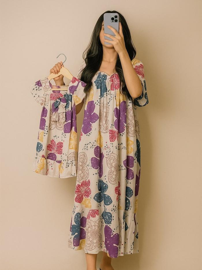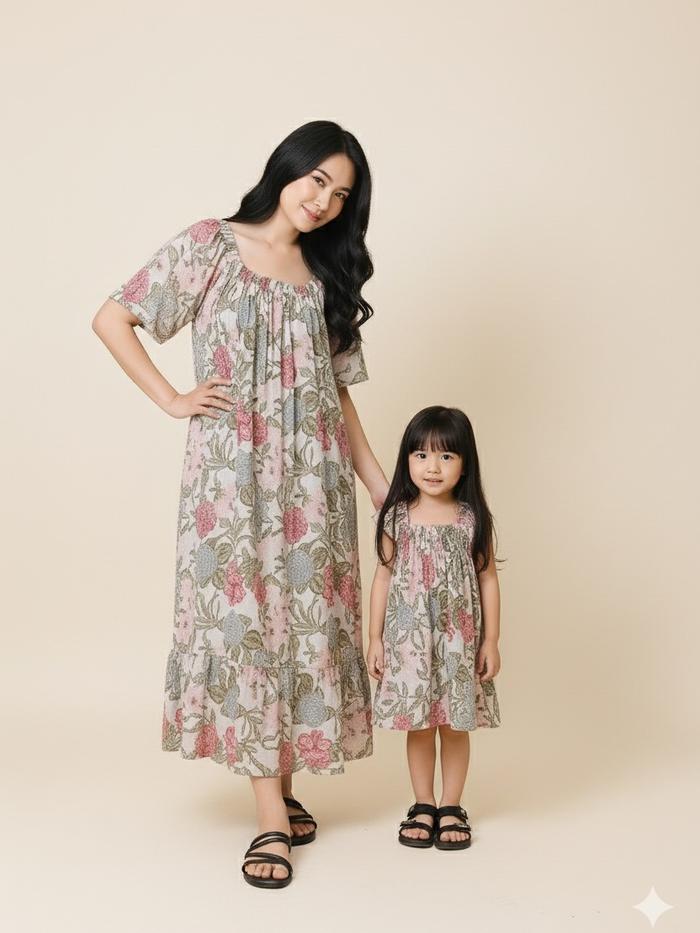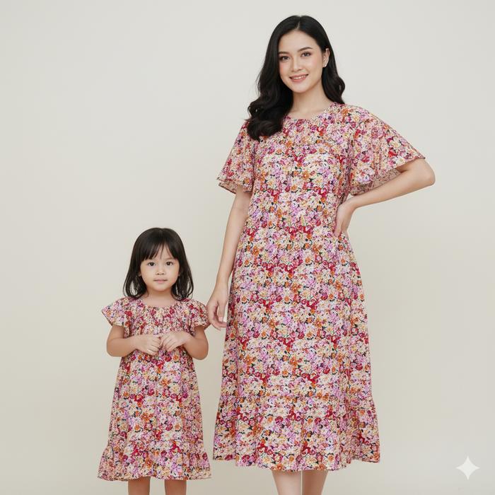 Paket Couple Amira Dress Daster Anak Perempuan Bayi Baru Lahir Umur Newborn 3 Bulan - 8 Tahun Dan Baju Daster Dewasa