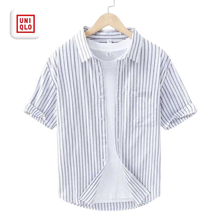Kemeja Salur Pria Lengan Pendek Motif Salur Kecil Full Katun Premium Kemeja Stripe Kasual-Formal