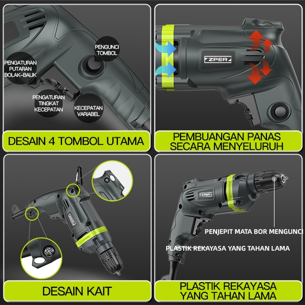 ZPER Mesin Bor Listrik Set Lengkap Tangan Bor Beton Bor Tembok Alat Bor Obeng Bor Kayu ZP018
