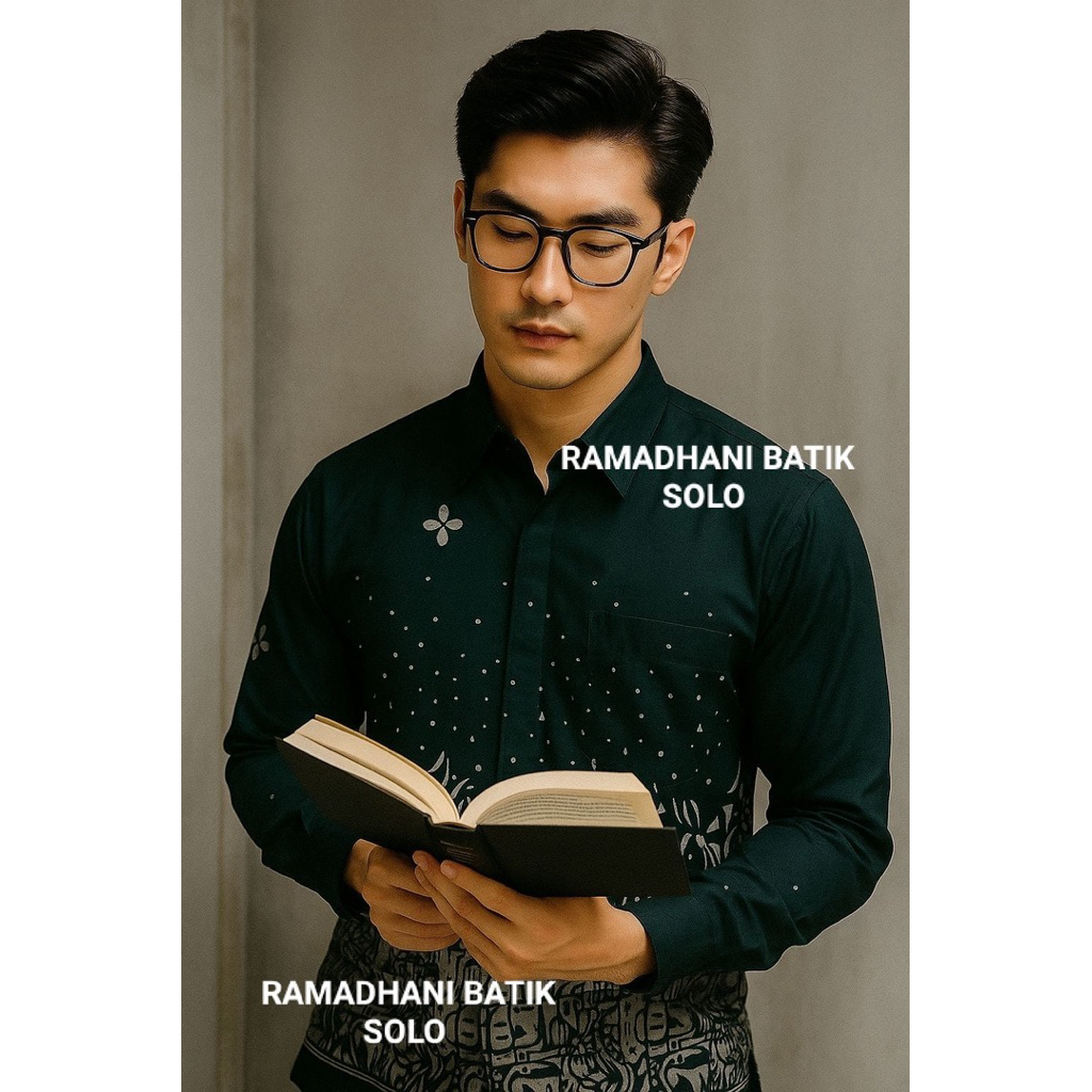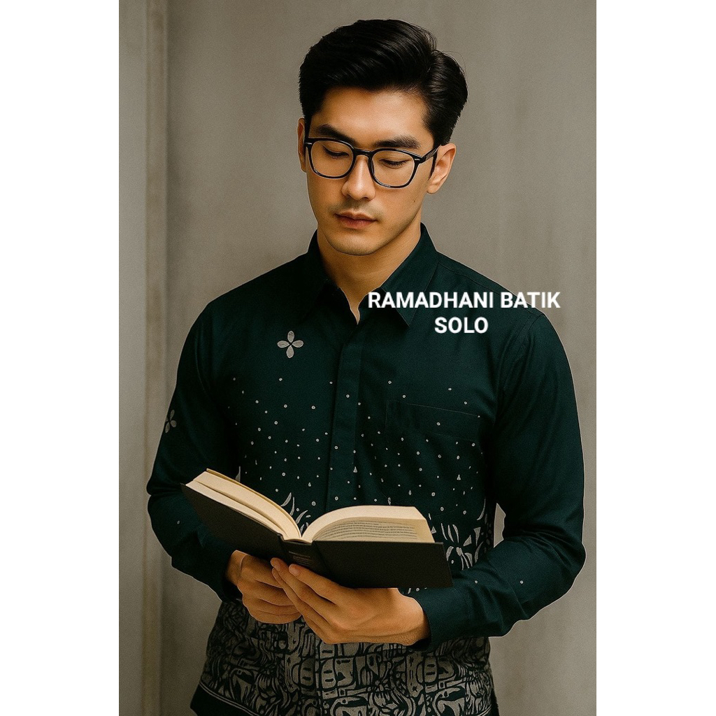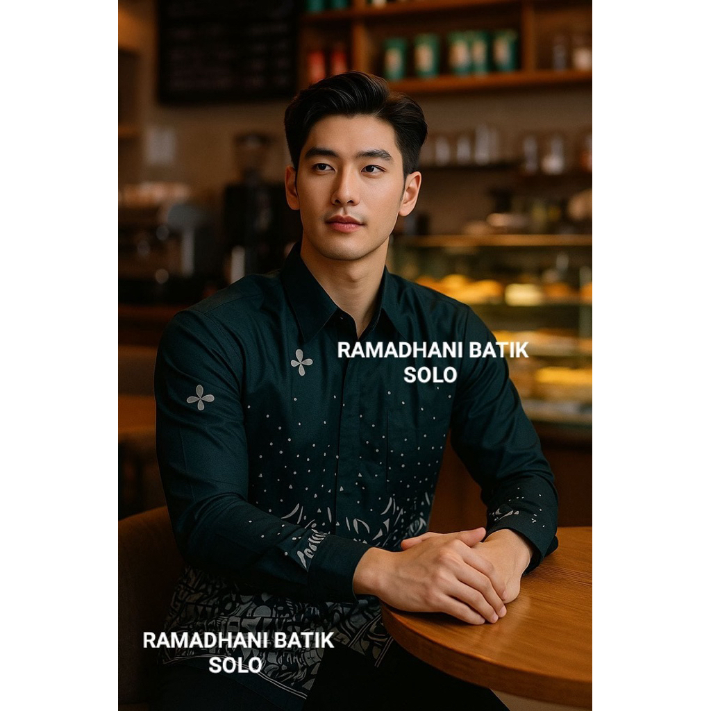 Abstrak Hijau Emerald Kemeja Batik Pria Lengan Panjang Slimfit Lapis Furing