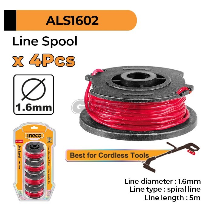 4-Pcs Nylon Spool Line Ingco Als1602 Tali Senar Mata Mesin Potong Pemotong Rumput Auto-Feed For Cgtli20018 Cgtli20