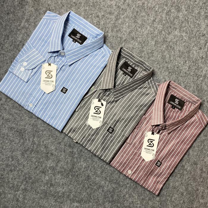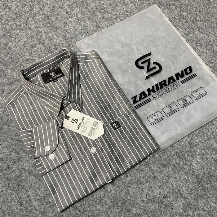 Zstarsss - Kemeja Salur Pria Lengan Panjang Polykatun - Hitam, M