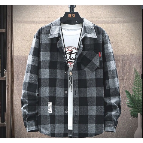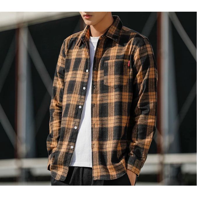 Pengiriman Cepat Kemeja Flanel Motif Kotak Coklat Lengan Panjang Pria Kualitas Import