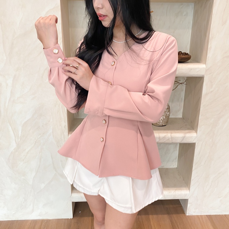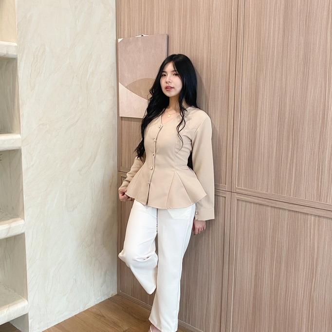Erika Peplum Longsleeve Top / Blouse Slim Fit Wanita Lengan Panjang Eleonor