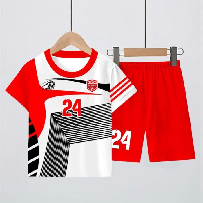 Setelan Jersey Anak-Anak/Setelan Baju Bola Anak Laki-Laki V04 - Jersey V04 Merah/24, No.11 Tahun
