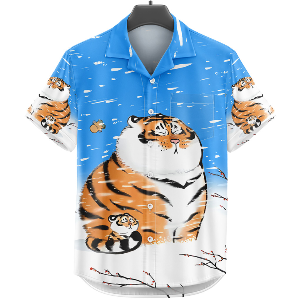 Dowear Baju Kemeja Santai Jumbo Pria Wanita Gambar printing Hawaiian Lengan Pendek 677 HARIMAU SALJU